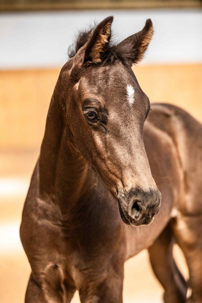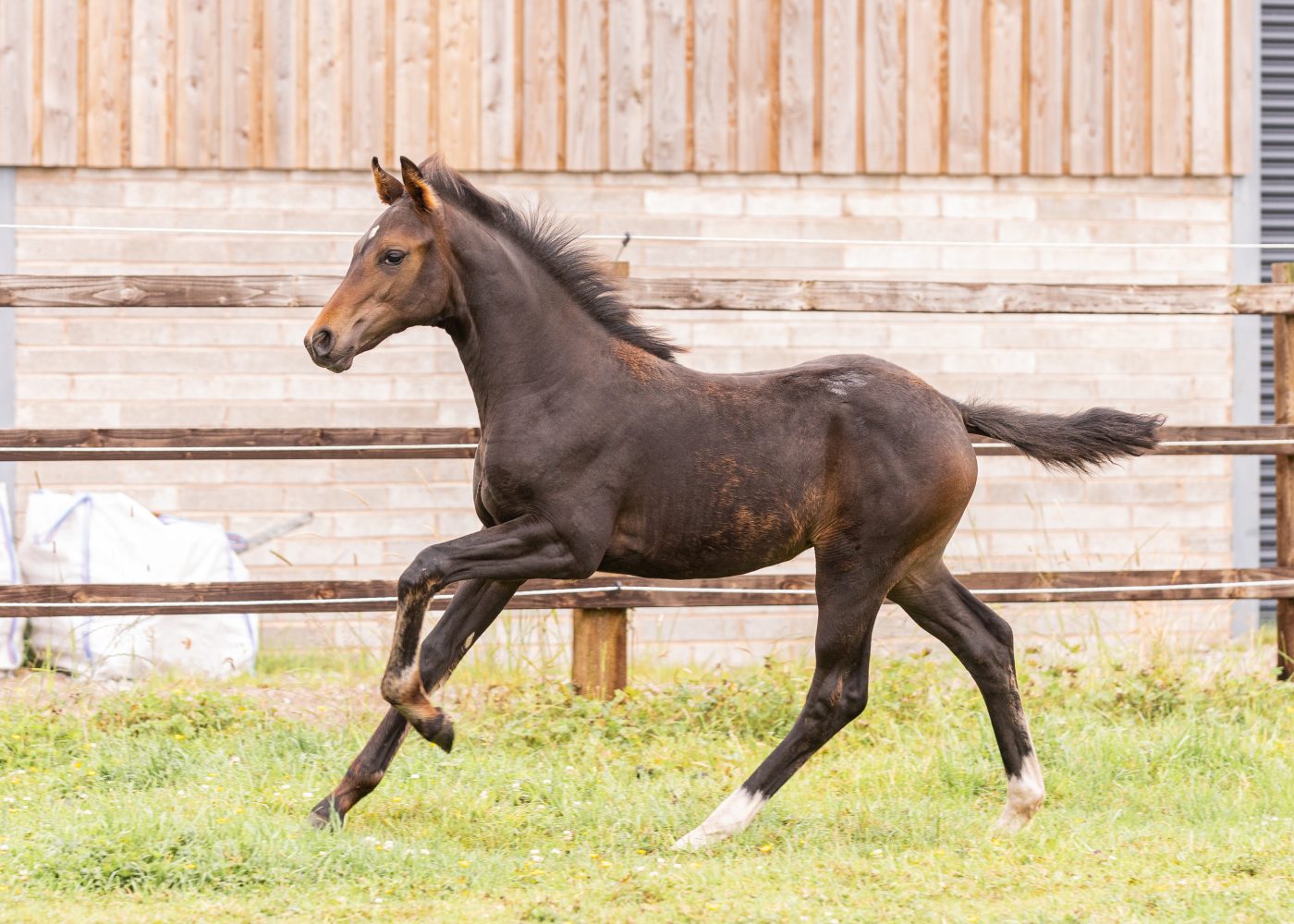 An aloof young mare with a mischievous sense of humour, with very strong paces.
